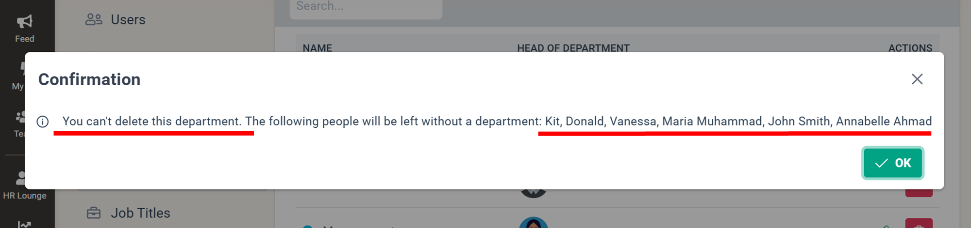 - Ensure no employees are assigned to the department before attempting to delete it.