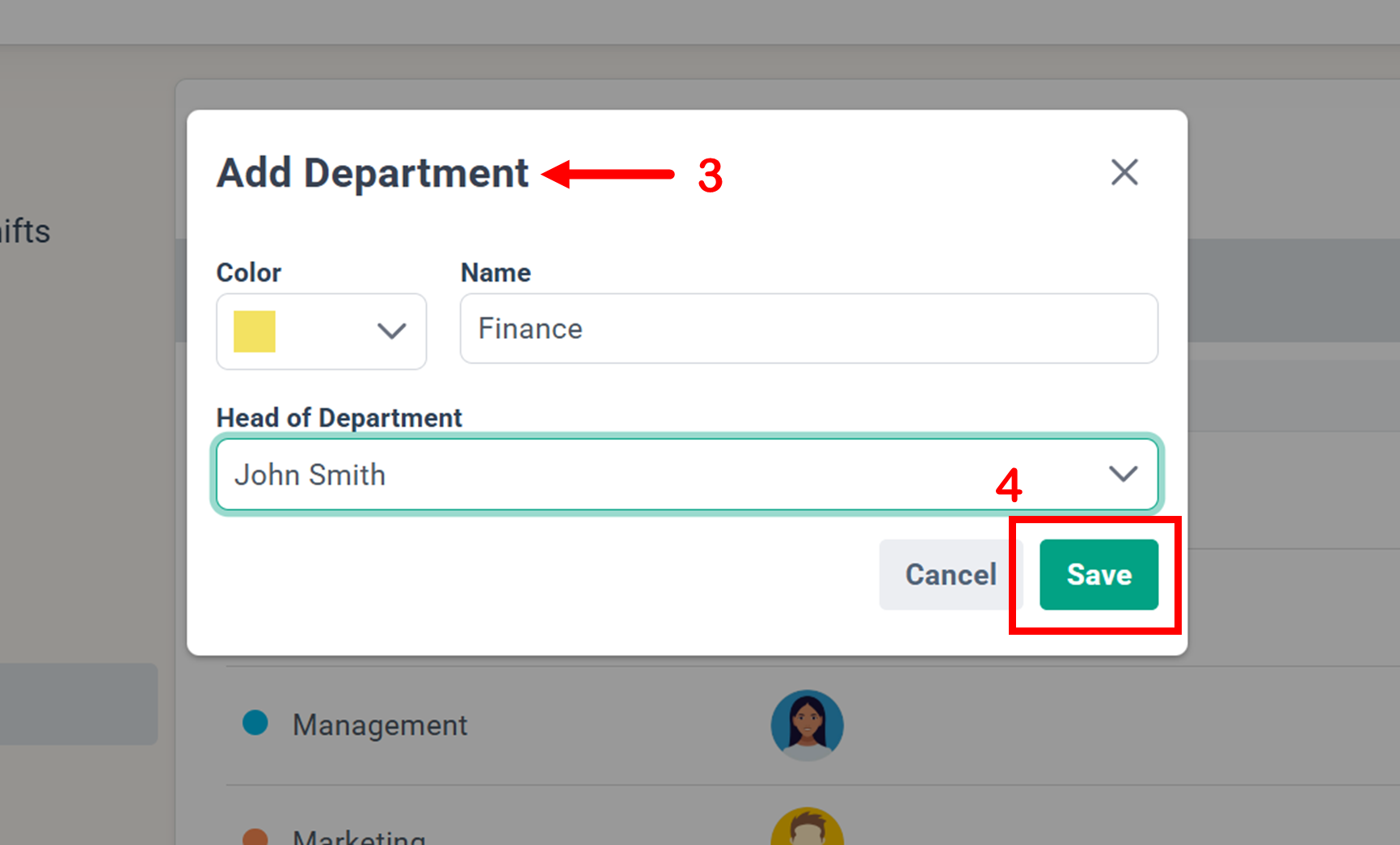 - (Optional) Set a colour indicator to help visually distinguish the department.