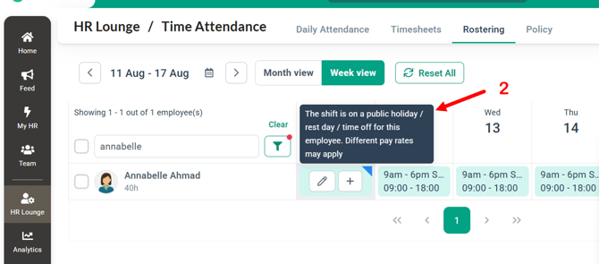 HR can help manage employees’ weekly and/or monthly rosters on behalf of their managers. This includes assigning shifts on public holidays to ensure overtime is calculated according to the correct public holiday rate and allow employees on shift-basis to clock in on the public holiday.