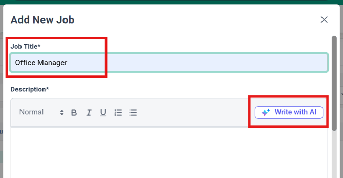 - Click "+Add New Job" to create a new job posting, or select an existing job to edit.