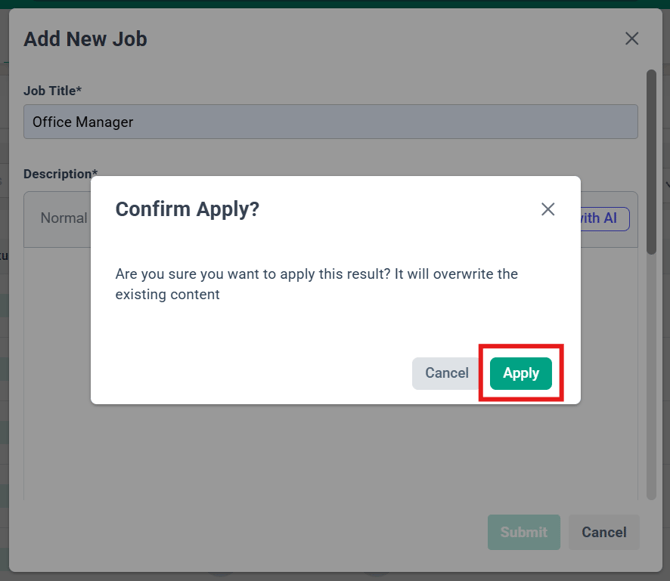 - Fill in the rest of the new job form the job description should reflect accordingly.