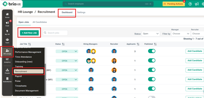 - Access the Recruitment Dashboard: