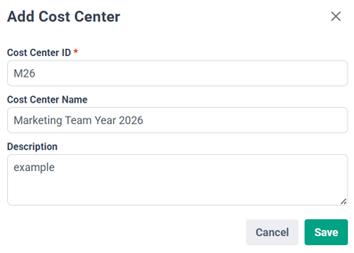 NOTE: The Cost Center ID is mandatory and must be provided in order to successfully create a cost center.