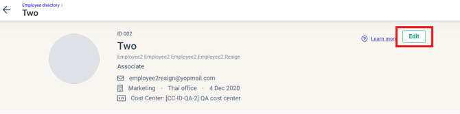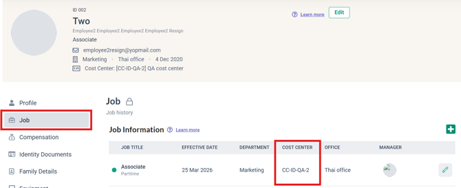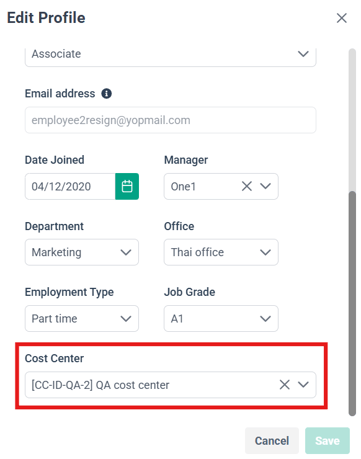 Q: Where can I find the assigned cost center in an employee’s profile?
