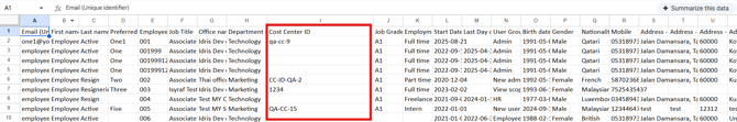 NOTE: Ensure that the Cost Center ID already exists in the system before performing the upload.