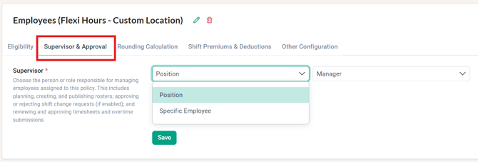 - Specific Employee: Select a specific individual. Overtime approval requests will be routed to this person instead of the employee’s reporting manager.