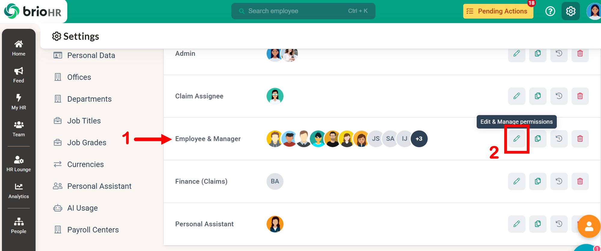 1. Find the user group that you want to edit (e.g, Employee & Manager)