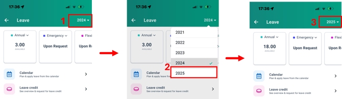 Once access is enabled, employees will be able to select the next year from the dropdown menu within the app.