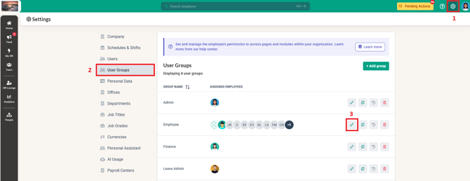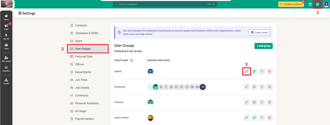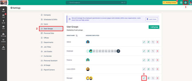 1. Login to BrioHR and click into Settings > User Groups