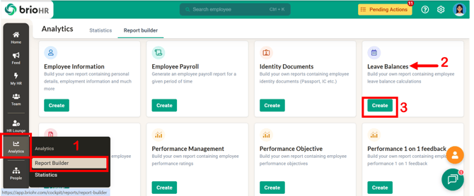 Learn how HR Admins can easily generate, customize, and export employee leave balance reports in BrioHR using the Analytics Report Builder.