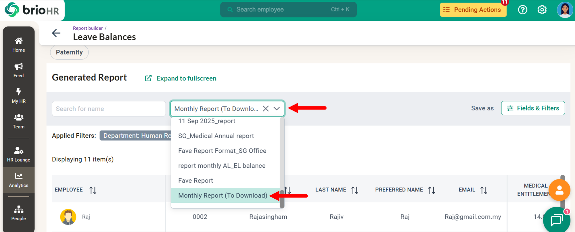 How to Generate and Customize a Leave Balance Report in BrioHR