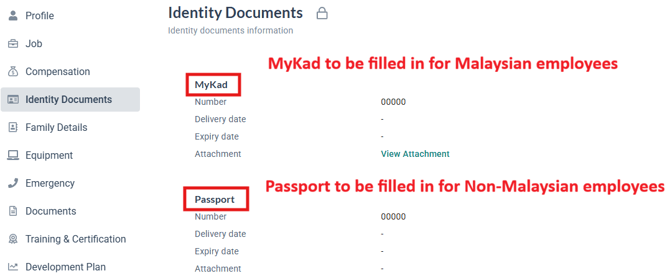 Therefore, please ensure this Identity Documents information has been updated accordingly in the Employee Profile > Identity Documents tab as per screenshot below