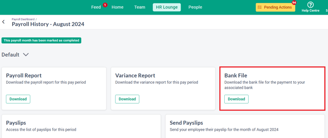 - In the Payroll History dashboard, click on the COMPLETED payroll month for which you want to process payments