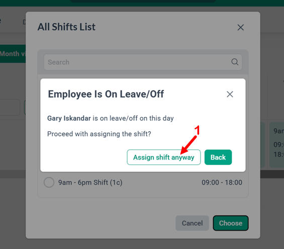 1. A confirmation pop-up will appear. Click Assign Shift Anyway.