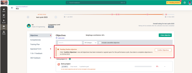 Once employees have prepared their objectives, you will review and confirm them. Depending on your organization’s settings, employees may still have permission to edit their objectives even after your confirmation.