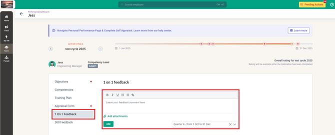 Both you and your employees can use the comment section to record notes from each discussion. These notes serve as a helpful reference for future conversations and ongoing performance monitoring.