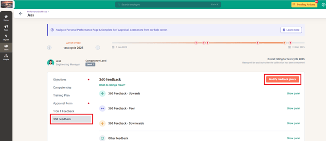 As a manager, you will need to assign the respective feedback givers for the employees and should ensure that employees complete their assigned feedback tasks thoughtfully and on time. Constructive feedback and ratings provided in this section contribute to a well-rounded evaluation for everyone involved.