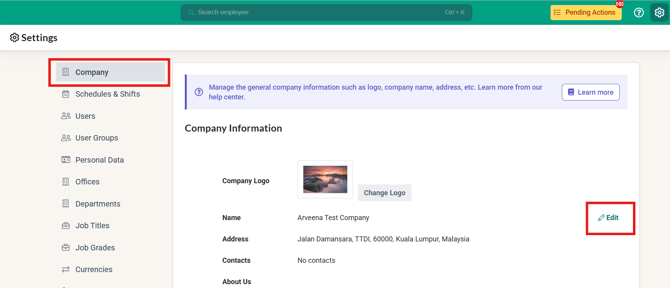 Once logged in to your BrioHR account, locate and click the Settings icon in the top right corner of the page.