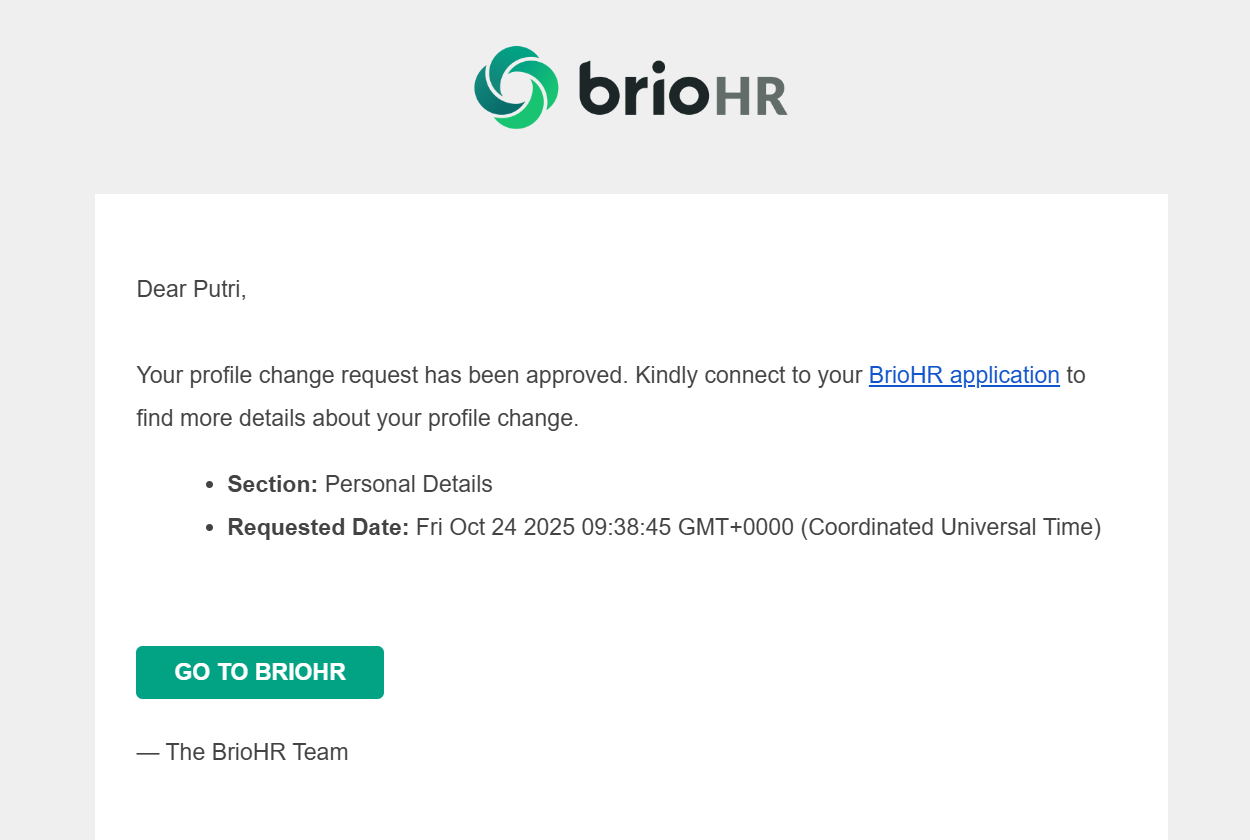 The Profile Change Requests feature in BrioHR gives employees flexibility to manage their personal profile information while ensuring all updates are validated and approved by HR.