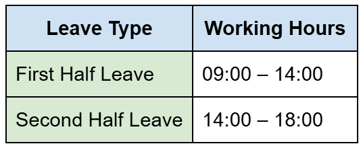 Once configured, the system will automatically remove the shift on any day when a half-day leave is applied.