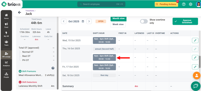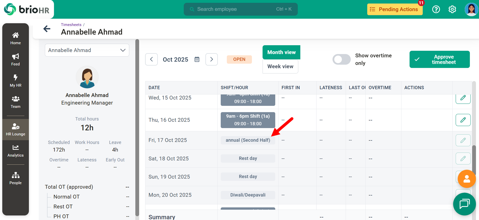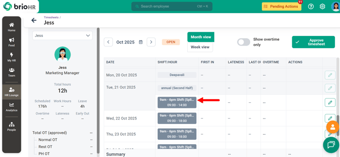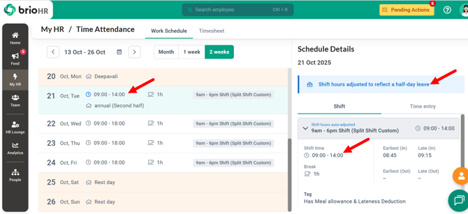 This feature ensures that BrioHR automatically handles shift splitting whenever a half-day leave is applied.