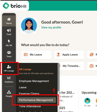 1. On the main navigation bar, go to HR Lounge > Performance Management.