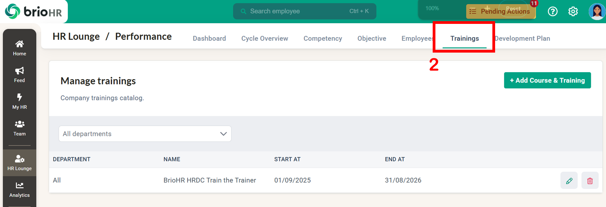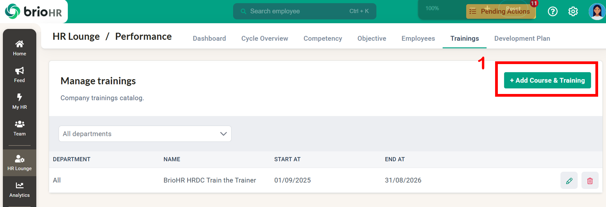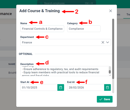 Learn how to create and manage training courses within the BrioHR performance cycle. Step-by-step guide for HR admins to record employee trainings for appraisal purposes.