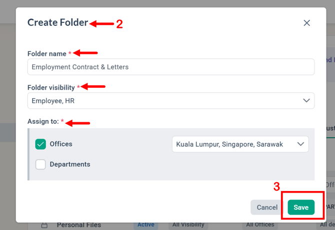 Enter a clear and descriptive folder name (e.g, Employment Contracts, Company Policy) - Folder Visibility