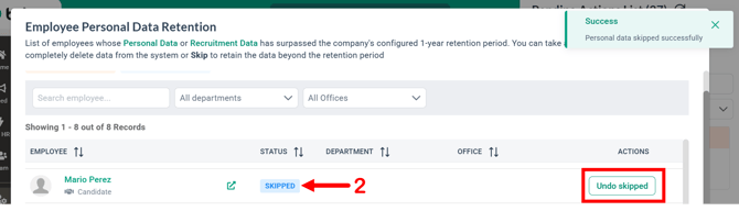 3. You can undo your action by clicking 'Undo Skipped' button.