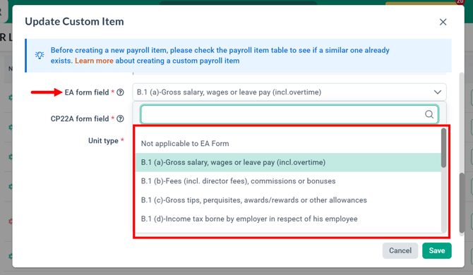 BrioHR default pay items are already mapped correctly to EA Form fields based on statutory requirements.