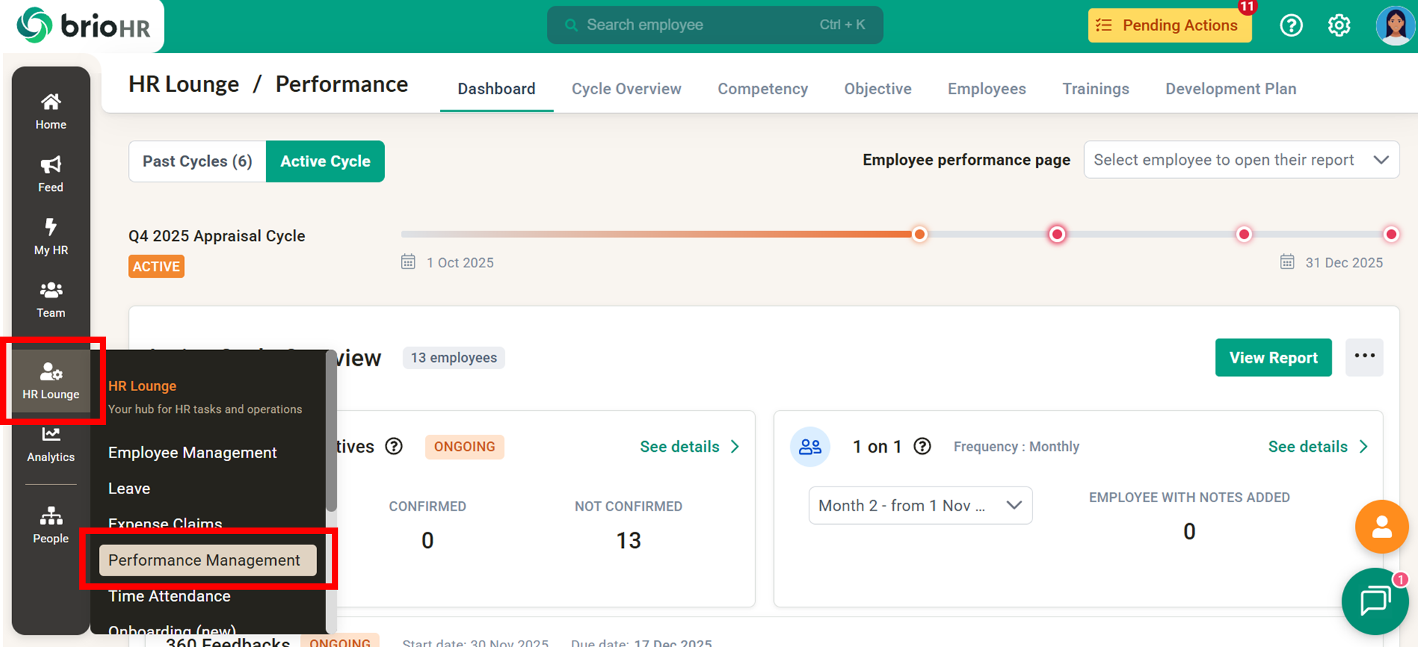 1. On the main navigation bar, go to HR Lounge > Performance Management.