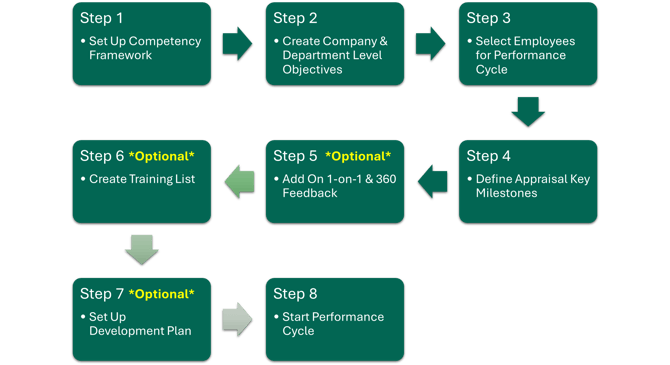 - (Optional) Including 1-on-1 Activities and 360 Feedback.