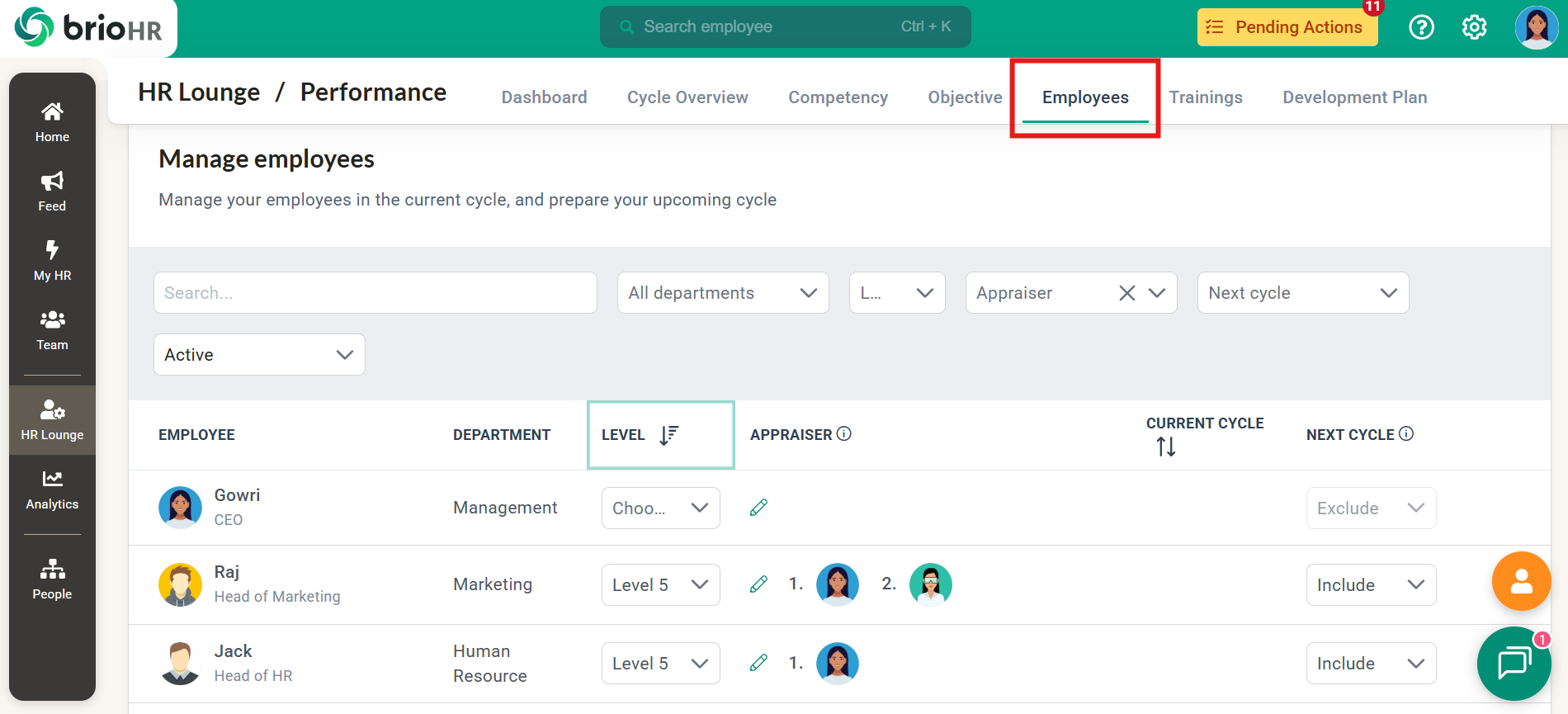 BrioHR allows only one performance cycle at a time. If there is a currently active cycle, it must be closed before launching a new one.