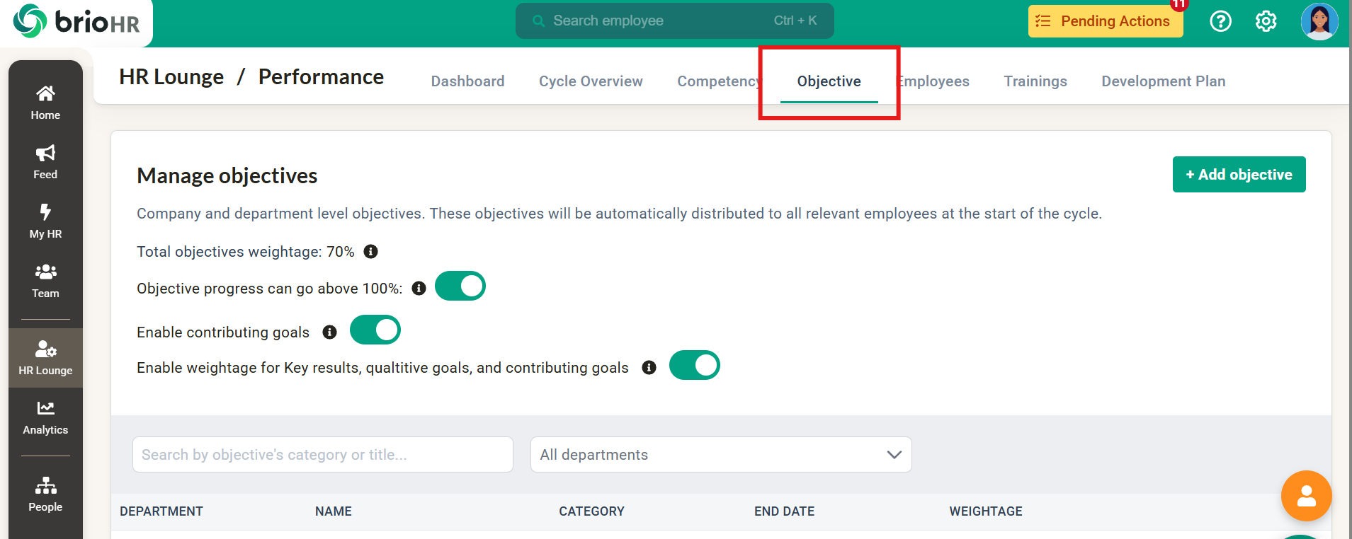 Employees can later modify these objectives to align with their personal performance goals once the performance cycle has started.