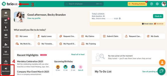 Log in to your BrioHR Main/Parent Account.