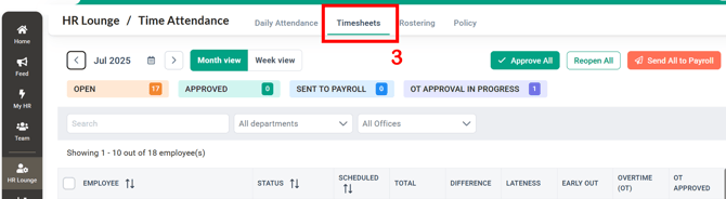 Approving timesheets at the end of the month is an essential step for HR Admins to ensure the system accurately captures and finalizes employees’ daily attendance for the calendar month.