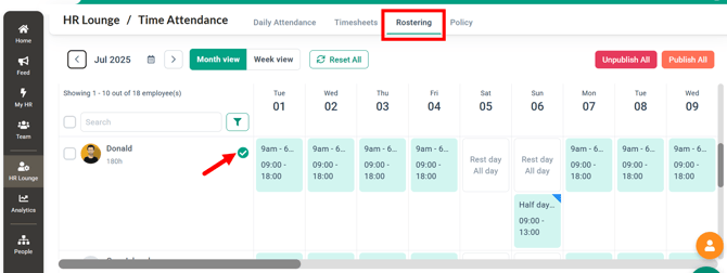 HR must ensure that all employees’ rosters for the week or month are published, so the system can accurately recognize all scheduled workdays. If employee has unpublished rosters, their timesheet cannot be approved.