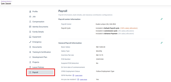 Click into the Employee Profile and into the Payroll column