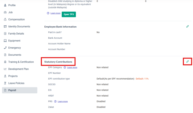 Scroll down to the Statutory Contributions and click on the Edit button