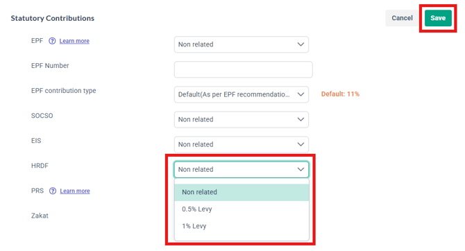 Under the Statutory column, edit the HRDF Field in the template to 'Non Related' for the employees