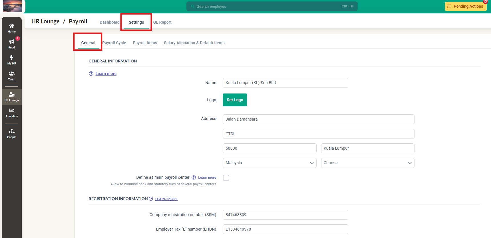 Click into HR Lounge and into the Payroll module Dashboard