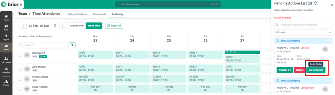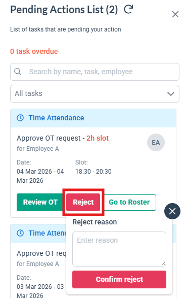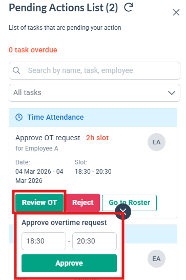 5. Choose to Review OT, Reject or check the Roster directly