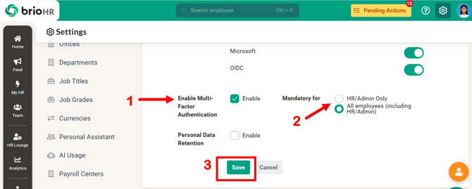 Step-by-Step Guide: Enabling MFA in BrioHR