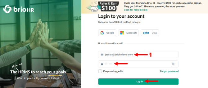 Step 1 - Enter Login Credentials on BrioHR Login Page
