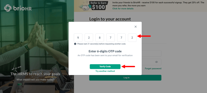 With these steps, users can securely log in to their BrioHR accounts while choosing the authentication method that suits their preferences.