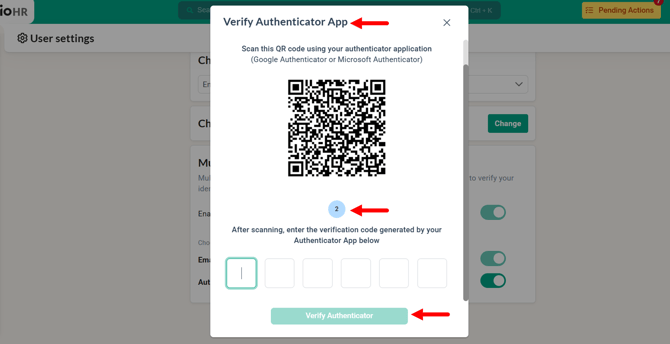 1. Scan the QR code displayed using your chosen authenticator app. BrioHR supports these Authenticator app: