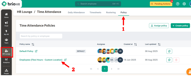 1. Navigate to HR Lounge > Time Attendance > Policy.