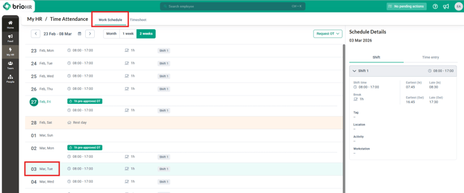 2. Proceed to click into the Work Schedule tab and into the date which you would like to assign the Overtime in advance