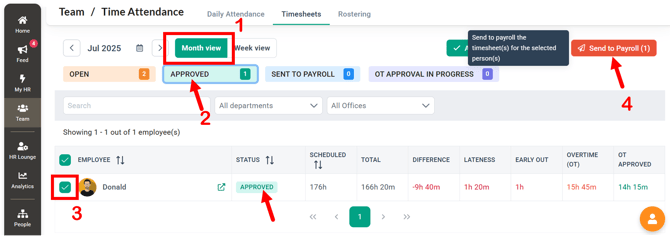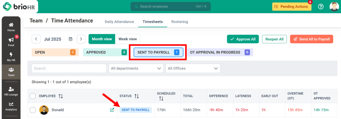 How to Send Approved Direct Reports’ Timesheets to Payroll in BrioHR