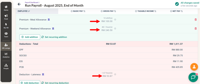 Shift Premiums and Deductions in BrioHR is a feature that automates payroll calculations based on employee's real attendance and shift behaviour.